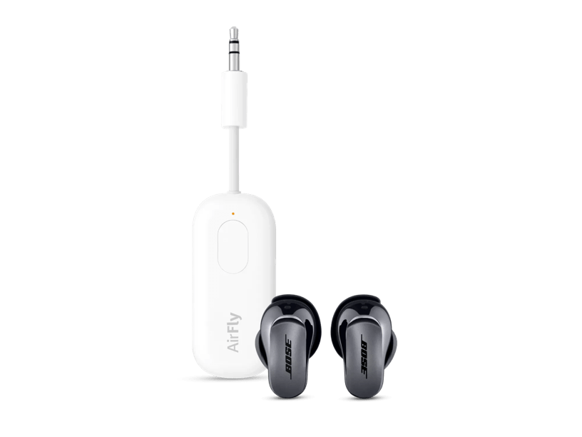 Powered by AirFly Pro, QuietComfort Ultra Earbuds can now work their wireless magic in the sky, at the gym, and other places without Bluetooth® connectivity. The tiny portable transmitter plugs directly into a headphone jack and pairs seamlessly with these noise cancelling earbuds to enjoy your content wirelessly or even connect another pair for shared listening with a friend. You can also use AirFly Pro as an AUX IN adapter to stream your smartphone's audio to devices such as car stereos, boats, or other non-Bluetooth speakers. Go truly wireless with this winning combo and never miss a beat.What’s in the Box