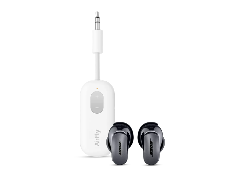 This set combines the world-class noise cancellation, spatialized audio, and all-day comfort of QuietComfort Ultra Earbuds with the power of the AirFly SE transmitter, allowing you to enjoy your content even in places that don’t have Bluetooth® connectivity. Powered by AirFly SE, which features 20 hours of battery life and automatic pairing, this winning combo makes your favorite earbuds more unstoppable than ever before.What’s in the Box